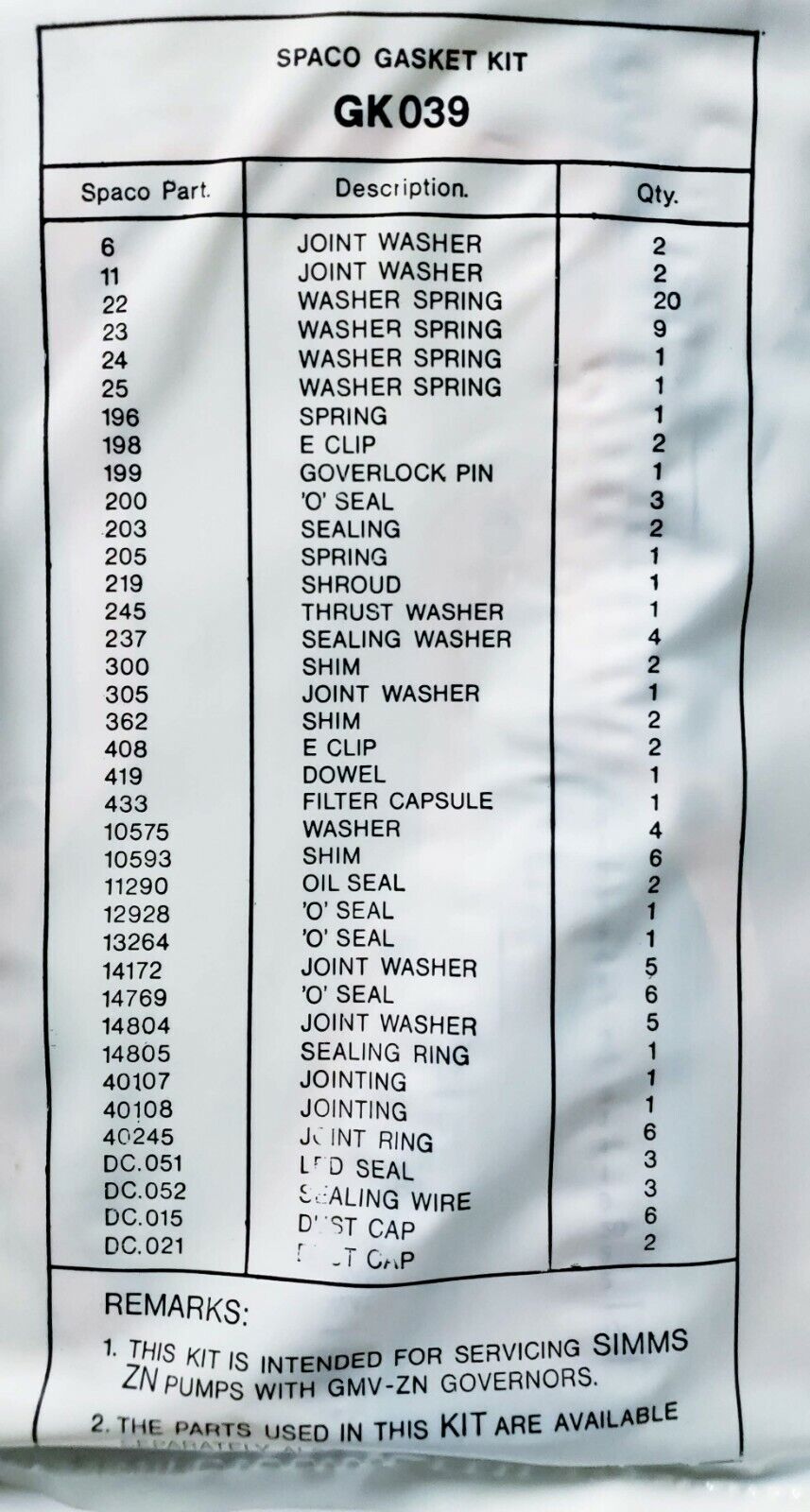 Gakset Kit GK039 Geeignet für Simms 6-Zylinder-Einspritzpumpe der SPE-ZN-Serie.