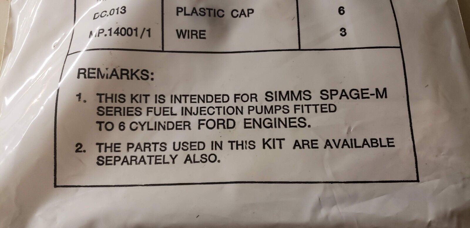 Simms GK004 Injection Pump Rebuild Kit for 6 cylinder Ford engines.