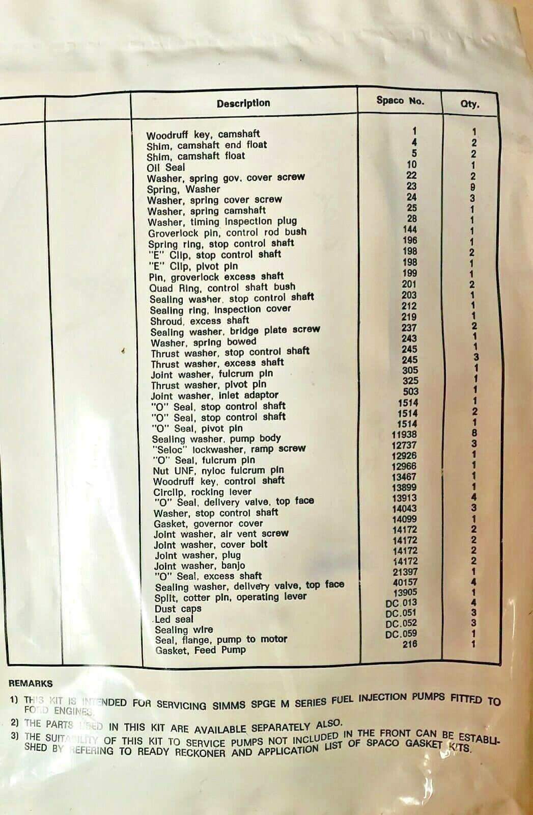 Simms GK032 6 CYL Injection Pump Rebuild Kit for Ford engines